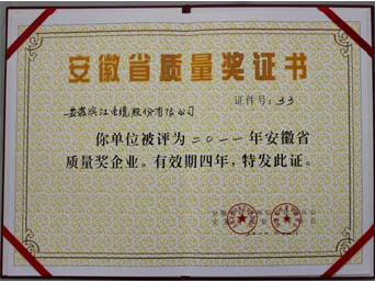 安徽省质量奖是省经信委、省质协根据《中华人民共和国产品质量法》,按照《卓越绩效评价准则(GB/T19580-2004)和《安徽省质量奖评审管理办法》的标准,在全省范围内开展评选的,代表了安徽省质量管理工作的最高荣誉。公司接到评选通知后,积极组织申报工作,经市经信委、省直有关部门及行业协会初审推荐,评审专家组对我公司进行了严格的资格审查、资料评审、用户评价、现场审查和综合评估。公司以领先的管理理念,扎实的管理基础,严谨科学的管理体系,赢得了专家们的认可。