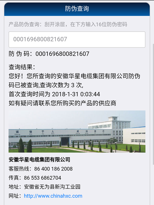 二、华星集团微信公众号已同步开通微信防伪查询,防伪标签贴在产品合格证上。消费者将防伪标签的涂层刮开后,用手机微信扫一扫,即可关注微信公众号。