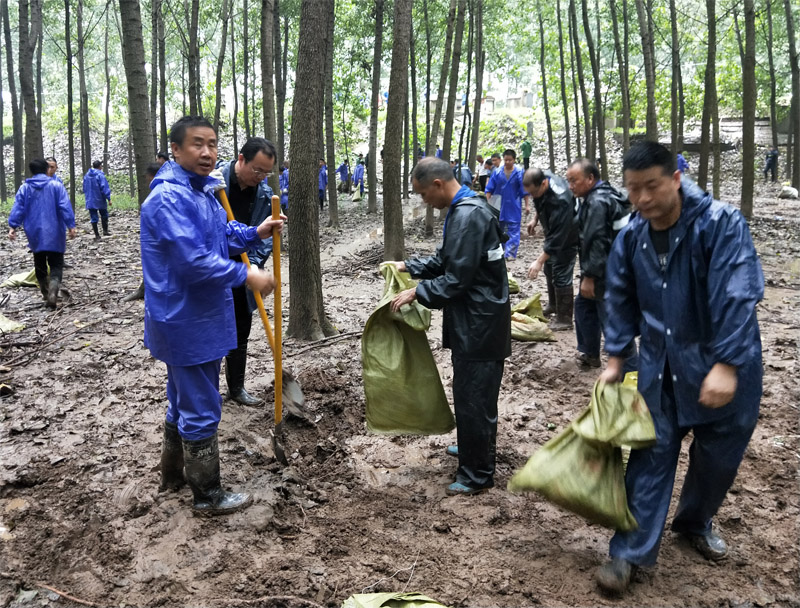 接到抢险命令后,24小时待命的华星电缆防汛抢险突击队紧急驰援古城村。由于现场情况危急,到达现场后队员们一刻也不敢歇。装沙袋、运砂石、搬泥土,按照防汛指挥部处置方案,采用砌养水盆和围堰的方式封堵管涌。在抢险现场,队员们脚踩铁锹、手撑编织袋,采取链路传递方式,把沙袋源源不断运到管涌口处。