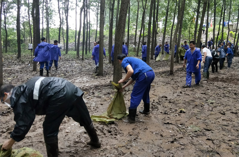 经过3个小时的连续奋战,古城小汪场两处管涌被成功封堵,队员们也松了一口气。但他们仍不敢离去,仍守在原地以防出现新的险情。突击队员们说:“洪水不退我们不退,确保广大群众安然无恙。”