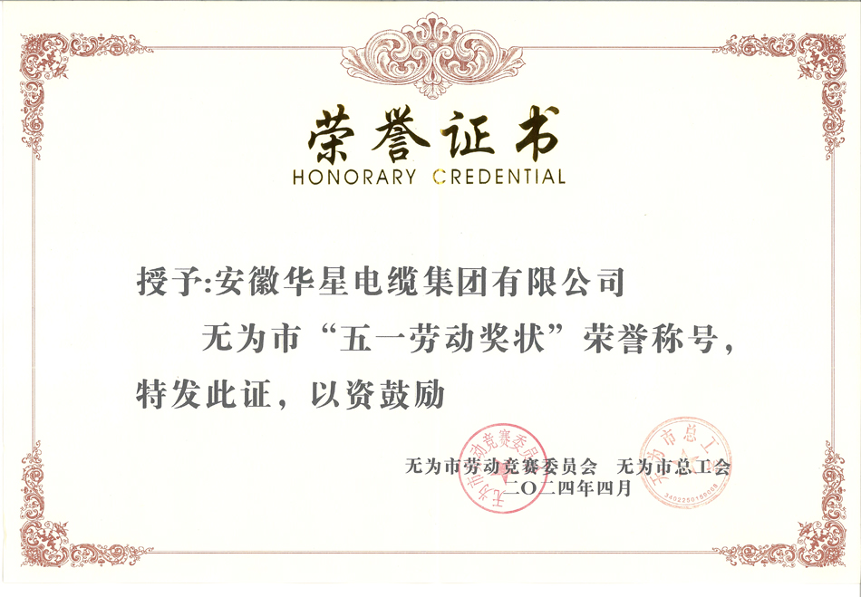 安徽华星电缆集团荣获无为市“五一劳动奖状”荣誉称号