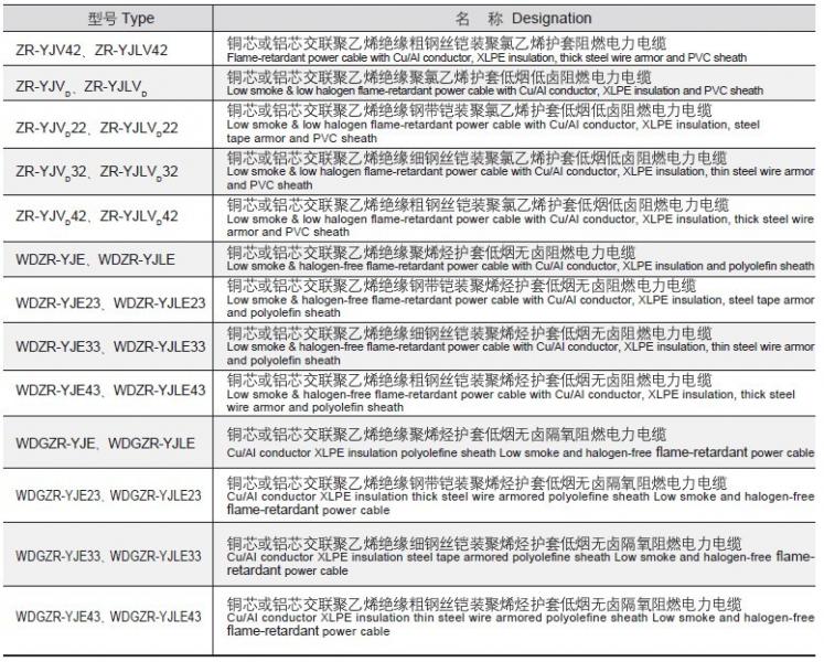 35KV及以下交联聚乙烯 绝缘电力电缆