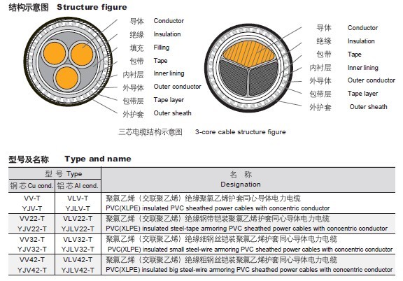 2、同心层导体比普通四芯电缆的第四芯在零序工作状态的电抗值低得多,有利于短路自动保护装置得灵敏动作,从而保证电缆相关设备的安全运行。
