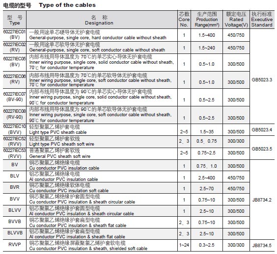 正常使用温度时:BV-90.RV-90型号导体最高温度为90℃,其他型号为70℃.