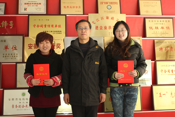 中特华星女职工在芜湖市弋江区总工会的组织下,参加了此次知识竞赛活动,活动采取身份证实名制填写答题卡。公司女职工汪信琼、徐乐两同志荣获《女职工劳动保护特别规定》知识竞赛活动省级优秀个人奖,公司工会主席徐长传为她们颁发了荣誉证书。