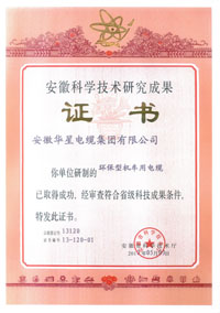 近日,安徽华星电缆集团有限公司四项产品获得由安徽省科学技术厅颁发的“安徽省科学技术研究成果证书”,分别为:新型特种模拟信号电缆、耐寒防腐蚀防潮抗紫外线控制电缆、环保型纳米复合高聚物电力电缆和环保型机车用电缆。