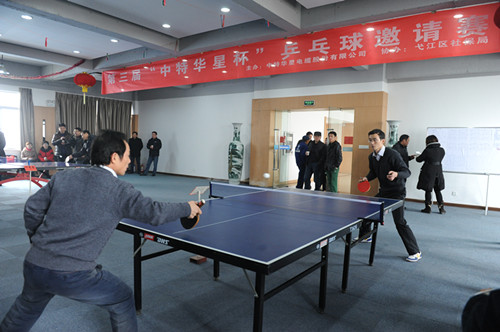 为丰富员工的业余生活,加强同芜湖市、弋江区政府相关部门以及高新区各企业的友谊,在中特华星电缆股份有限公司党支部和工会的精心组织,妥善安排下,“中特华星杯”乒乓球邀请赛于12月15日在公司六楼会议室拉开了帷幕。