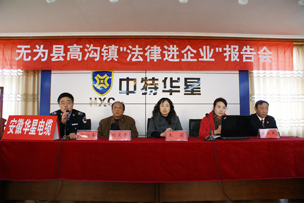 12月3日下午,由芜湖市司法局、无为县司法局、高沟镇司法所联合举办的“六五普法”活动——无为县高沟镇“法律进企业”报告会在安徽华星电缆集团有限公司六楼会议室召开。