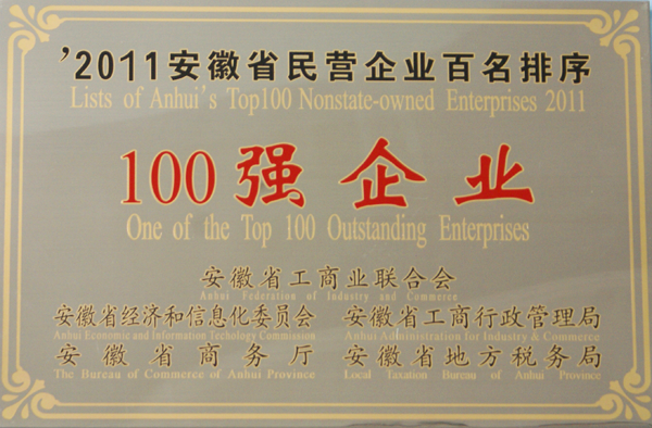 安徽华星荣获“2011年度安徽民营企业100强”荣誉称号