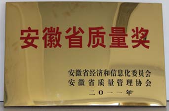 安徽省质量奖是省经信委、省质协根据《中华人民共和国产品质量法》,按照《卓越绩效评价准则(GB/T19580-2004)和《安徽省质量奖评审管理办法》的标准,在全省范围内开展评选的,代表了安徽省质量管理工作的最高荣誉。公司接到评选通知后,积极组织申报工作,经市经信委、省直有关部门及行业协会初审推荐,评审专家组对我公司进行了严格的资格审查、资料评审、用户评价、现场审查和综合评估。公司以领先的管理理念,扎实的管理基础,严谨科学的管理体系,赢得了专家们的认可。