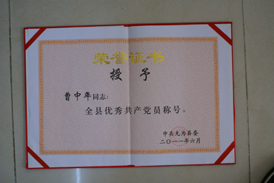 2011年6月7日,董事长荣获无为县优秀共产党员称号