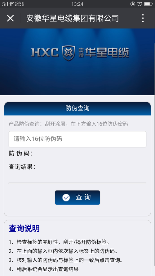 四、输入防伪标签上的16位验证码即可查询真伪。
