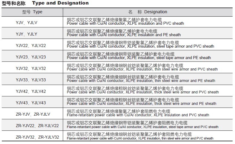 35KV及以下交联聚乙烯 绝缘电力电缆